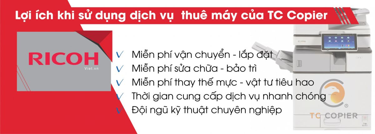 + Hỗ trợ đổi máy photocopy khác tốt hơn (không thu thêm phí) khi máy photocopy quý khách sử dụng gặp lỗi nghiêm trọng và không khắc phục được ngay!